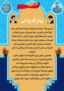 از خداوند متعال مزید توفیقات، عزت روزافزون و پاداش معنوی برای همه عزیزانی که در بزرگداشت نام و راه شهید احمد کشوری سهیم بودند، مسئلت مینماییم.